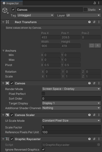 - Event Camera:用于处理UI事件的摄像机,如果不设置,不能正常处理UI事件,一般用于VR/AR开发,可以跟随玩家移动,空间中UI方式;