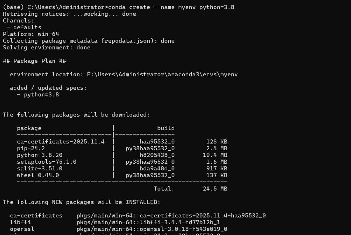 3. 创建Python环境: 打开Anaconda Prompt(Windows)或终端(macOS/Linux)。 输入 conda create –name myenv python=3.8(可替换myenv为自定义环境名,3.8为Python版本)。 激活环境:conda activate myenv。