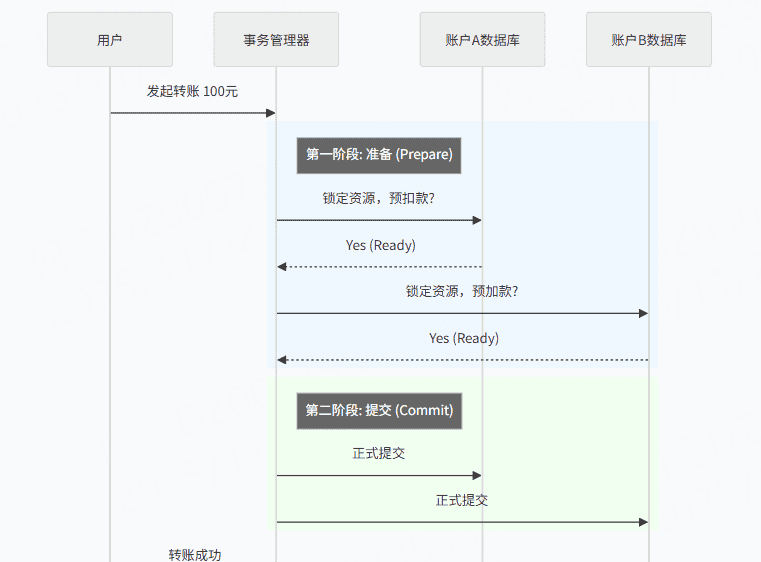 图 3.1:两阶段提交 (2PC) 保证强一致性
