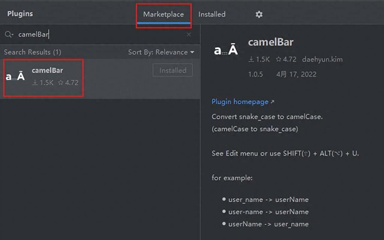 1. 在Idea中,搜索插件 file -》settings -》plugins -》camelBar