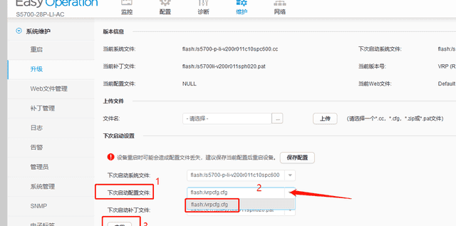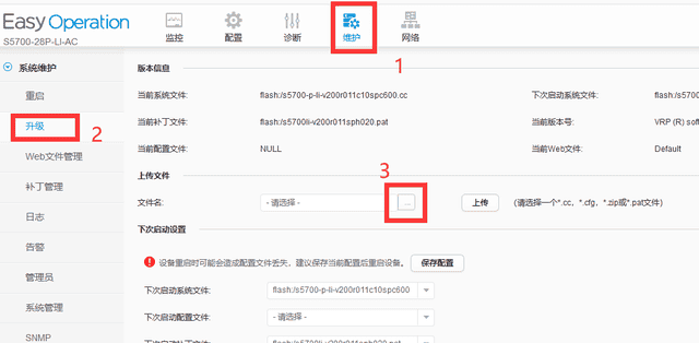 3、现在我们用web方式登录交换机,然后把配置文件上传到交换机上: