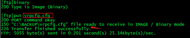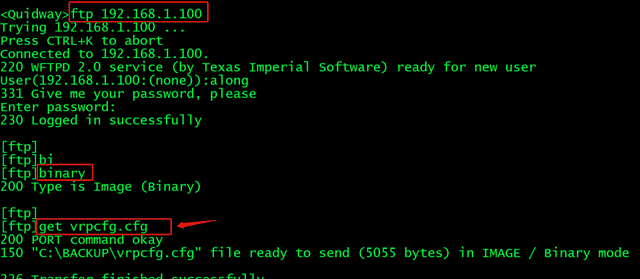 2、交换机通过FTP方式,登录到台式电脑,然后把配置文件推到(备份到)电脑上(FTP目录上)
