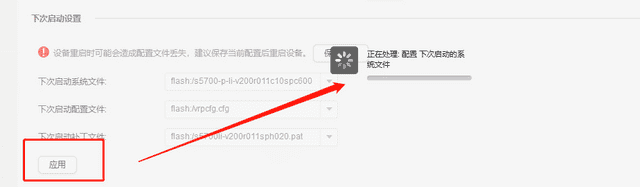 然后在“下次启动配置文件”那里 设置,选择刚刚上传的文件名,然后点击“应用”:
