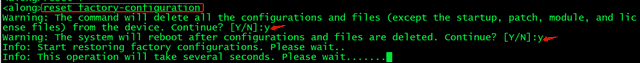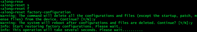 使用命令恢复:reset factory-configuration