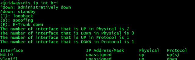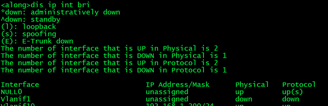 2、查看三层ip设置,默认没有设置了,接下来我们给交换机配个vlan,设置三层ip接口,并把G0/0/24划到该vlan: