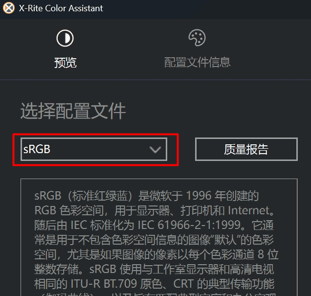 打开X-Rite,将配置文件选择为,如下图: