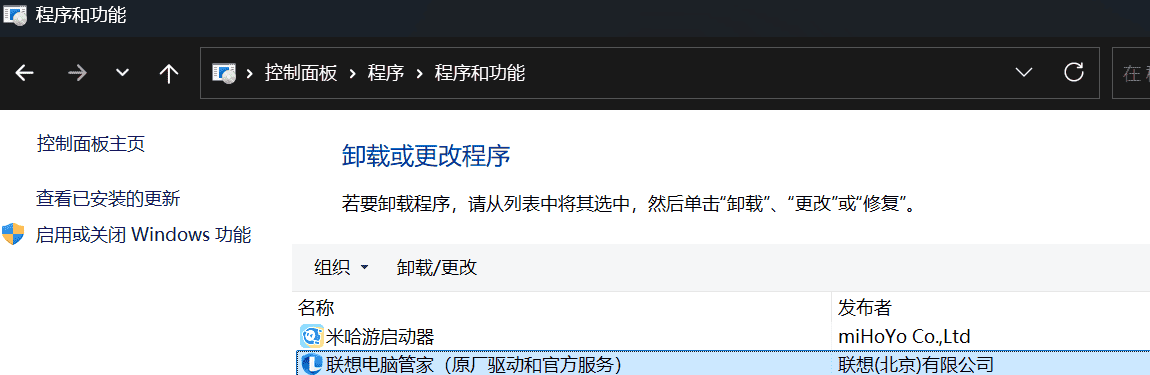 若无需继续使用联想电脑管家,可在控制面板卸载联想电脑管家,如下图: