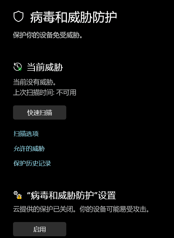 值得注意的是,此时Windows Defender也会自动开启,如下图。若想关闭Windows Defender可查看本人的另一篇文章,禁用Windows Defender 。