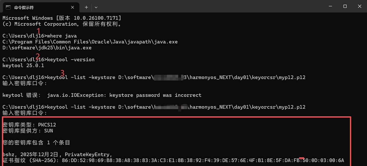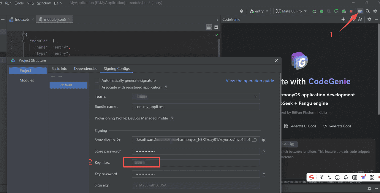 Error Message: KeyAlias {debugKey} is not exist in {D:/software/xxxxxxx/harmonyos_NEXT/day01/keyorcsr/myp12.p12}