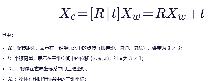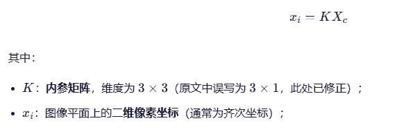:利用内参逆矩阵 ( K^{-1} ) 将像素坐标转换为归一化相机坐标(消除焦距和主点影响)。