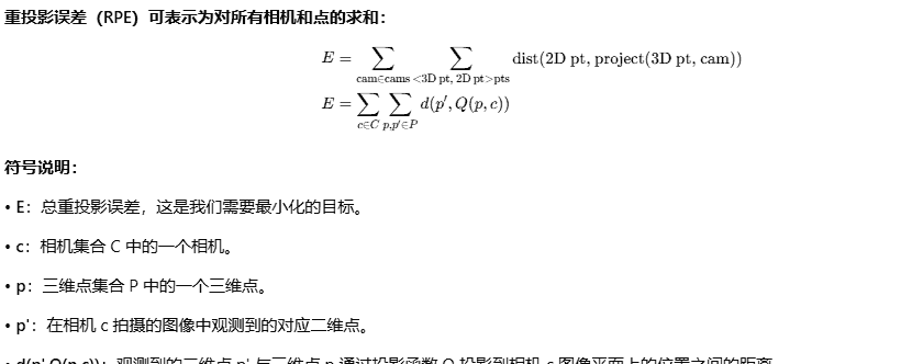 通过最小化所有观测点的重投影误差(reprojection error),联合优化相机位姿和三维地图点,从而提高整体精度。