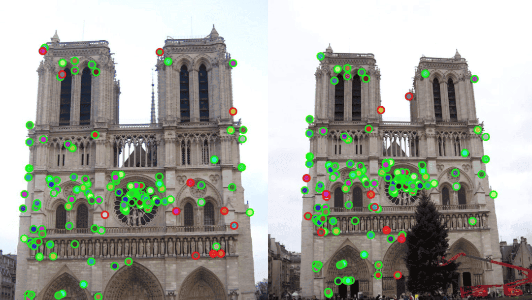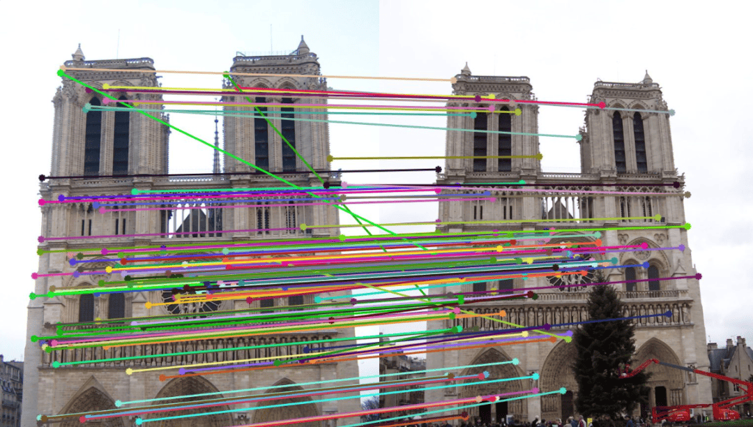 进行特征匹配,找出两帧之间的对应点。