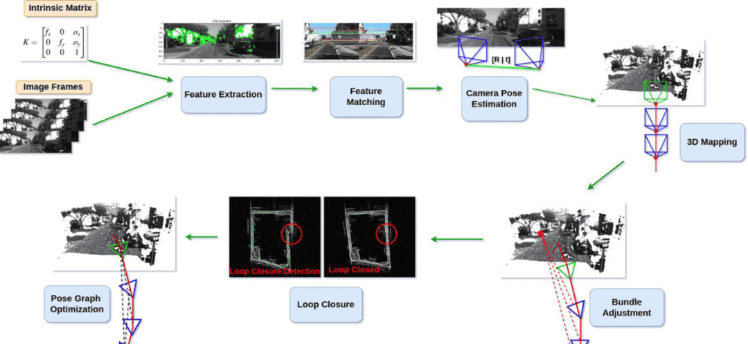 SLAM 是多种不同方法的集合体,旨在创建环境的 3D 地图并估计相机位姿。这使得 SLAM 非常具有挑战性,因为任何一个环节出错都可能影响其他部分。因此,理解涉及的所有步骤非常重要。