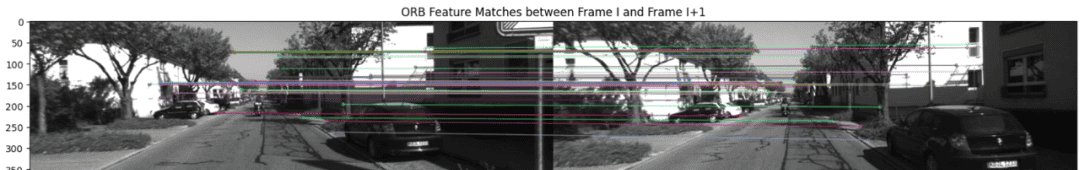 def match_frames(f1, f2):bf = cv2.BFMatcher(cv2.NORM_HAMMING)matches = bf.knnMatch(f1.des, f2.des, k=2)ret = []idx1, idx2 = [], []for m, n in matches:if m.distance < 0.75 * n.distance: # Lowe's ratio testp1 = f1.pts[m.queryIdx]p2 = f2.pts[m.trainIdx]if np.linalg.norm(p1 - p2) < 0.1: # 额外距离约束idx1.append(m.queryIdx)idx2.append(m.trainIdx)ret.append((p1, p2))assert len(ret) >= 8ret = np.array(ret)idx1 = np.array(idx1)idx2 = np.array(idx2)# 使用 RANSAC 拟合基础矩阵model, inliers = ransac((ret[:, 0], ret[:, 1]),FundamentalMatrixTransform,min_samples=8,residual_threshold=0.005,max_trials=200)ret = ret[inliers]Rt = extractPose(model.params)return idx1[inliers], idx2[inliers], Rt