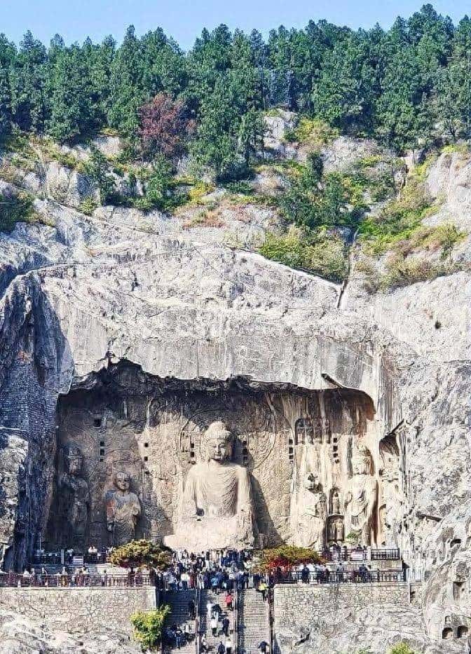 想看石刻和雕像,就去洛阳的龙门石窟吧。从北魏孝文皇帝开始修造后,经过长期开凿形成了目前的规模庞大的石窟群,现有洞窟、龛像超过两千三百个,造像数超过十一万尊,其中最大的佛像叫卢舍那大佛,其高约十七米左右,脸上的表情是柔和的微笑,并且耳朵也很长,长度接近两米,而这里的地势地形像个门,所以被称为“龙门”,可以一边在博物馆里看文物一边在外边看露天的石刻,在里面可以看到造像也可以感受到石刻的年代感。