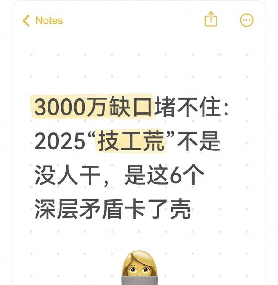 实则“技工荒”早就不是表面的“供需失衡”,而是产业升级、教育体系、职业生态、社会观念等多重矛盾交织的结果。2025年产业数字化、绿色化转型加速,这些矛盾被进一步放大,才导致“企业招不到、年轻人不愿来、学校教不出”的死循环。今天就用大白话拆透这6个深层缘由,没有空洞的理论,全是2025年最新的真实案例和数据,看完你就清楚,“技工荒”的病根到底在哪。