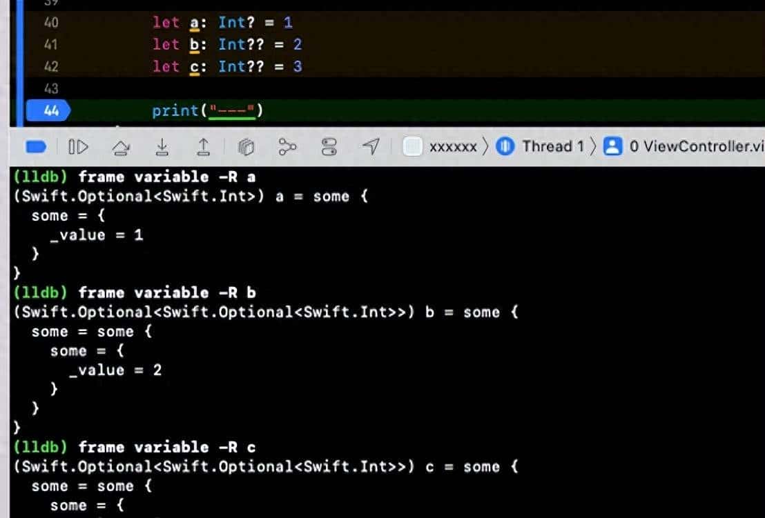 let c: Int?? = nil // 表明c中存储的是nil,而不是Optional(nil)