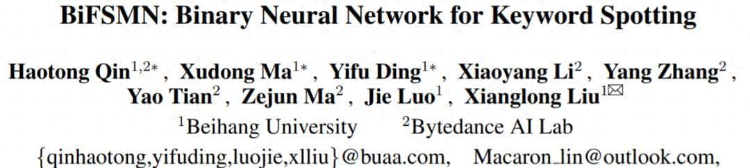 近年来,以 FSMN 为代表的语音关键字识别(KWS)模型在各类边缘场景得到广泛应用。不过,语音唤醒应用的实时响应需求和边缘设备上有限计算与能耗资源间的矛盾一直存在,这阻碍了 KWS 模型在真实世界硬件设备上的部署。近日,人工智能顶会 IJCAI 2022 接收论文结果已经正式公布,北航刘祥龙教授团队和字节跳动 AI Lab 智能语音团队联合提出了首个针对 KWS 任务的二值神经网络 BiFSMN,并在 ARM 设备上实现了高达 22.3 倍和 15.5 倍的推理加速和存储节省。