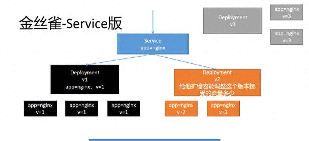 以前可以使用 k8s 的 Service 配合 Deployment 进行金丝雀部署。原理如下
