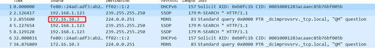 从图中能看到我本机配置了192.168.1.123,但有172.16.10.3的数据包,那这个肯定是服务器管理口地址了。实则除了这种方式,如果你能确定之前管理地址的网段,写个脚本自动连接测试也行,这里我也附一个简单python脚本样例的截图。