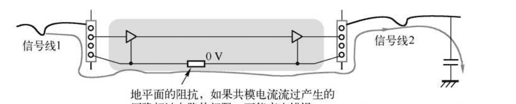 应尽量避免共模干扰电流流过敏感电路或高阻抗的接地回路。