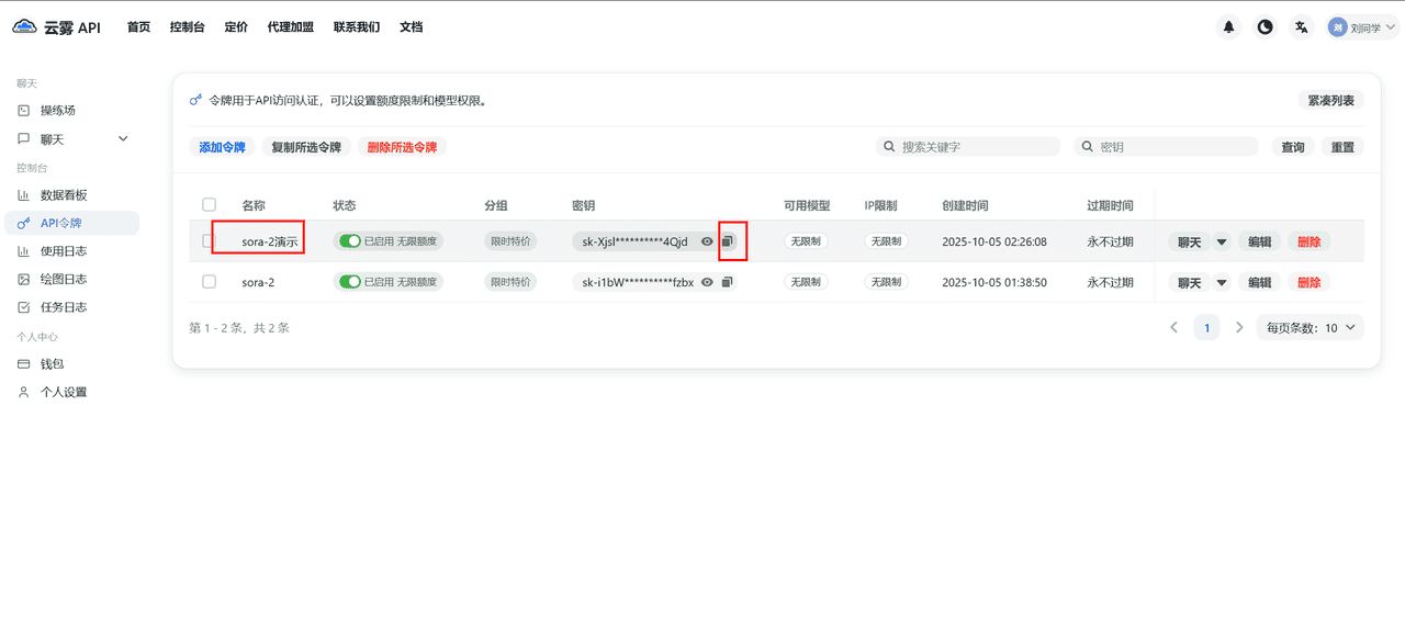 先点击定价,然后找到sora-2模型(也可以不找,因为确认有)