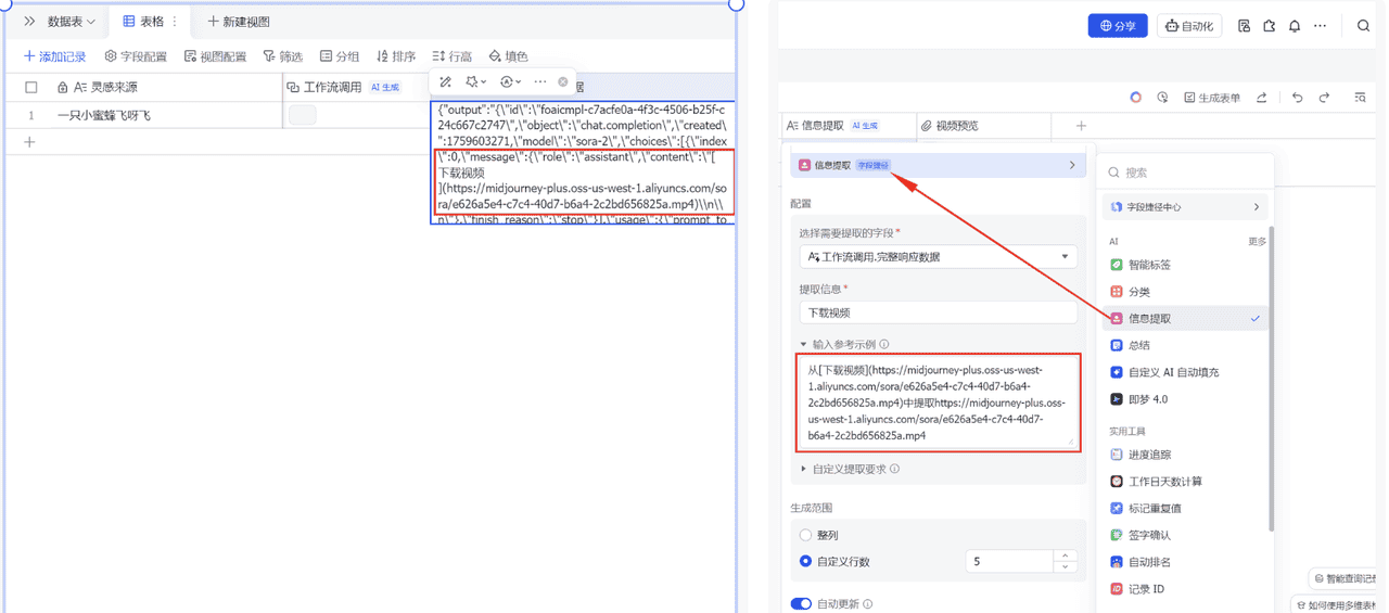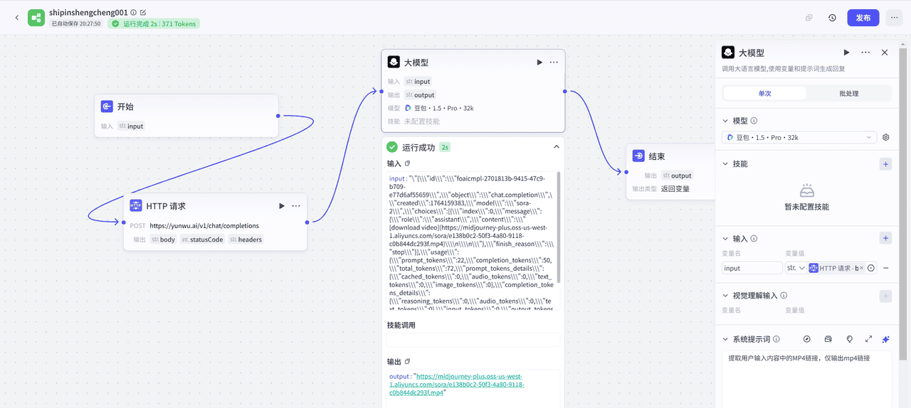 如果感觉难度过大,可以就此止步。添加一个大模型提取视频链接即可