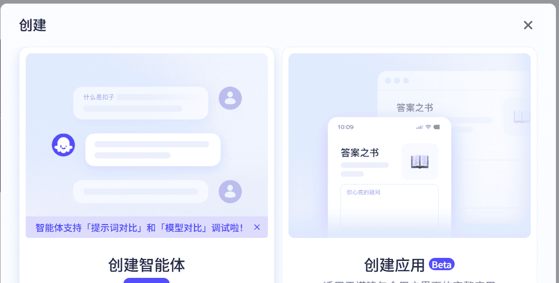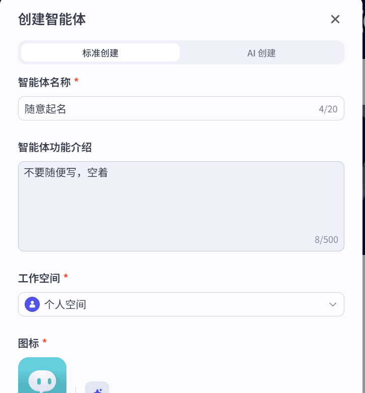 点击左侧加号创建智能体