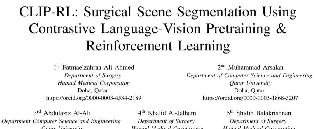 [1]. CLIP-RL: Surgical Scene Segmentation Using Contrastive Language-Vision Pretraining & Reinforcement Learning