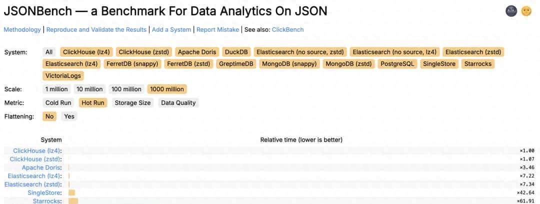 打开 JSONBench 的榜单,心情一如既往的期待加紧张。