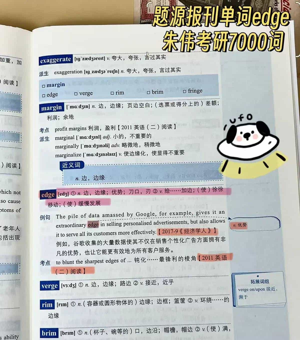 edge [edʒ] ① n. 边,边缘;优势;刀口,刃 ② v. 给……加边;(使)徐徐移动;(使)缓慢发展
