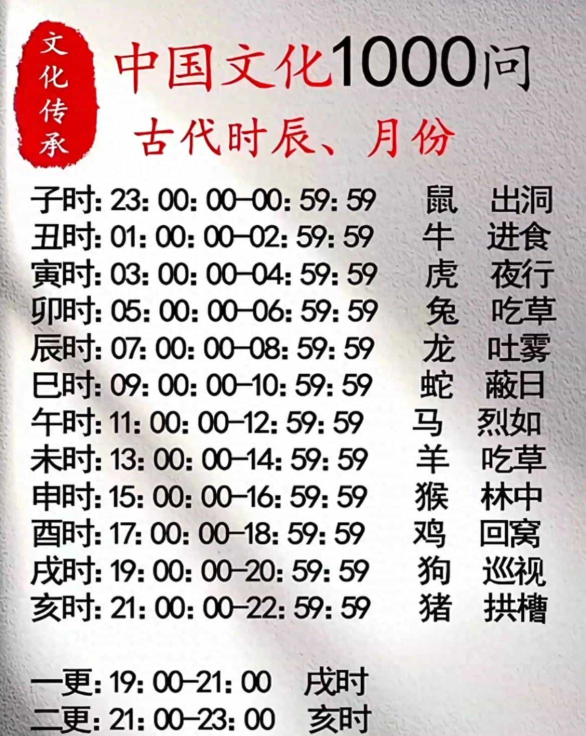 这份内容梳理了古代十二时辰、五更的时间对应,还结合十二生肖赋予了时辰趣味特征,以下是逐点详细注释: