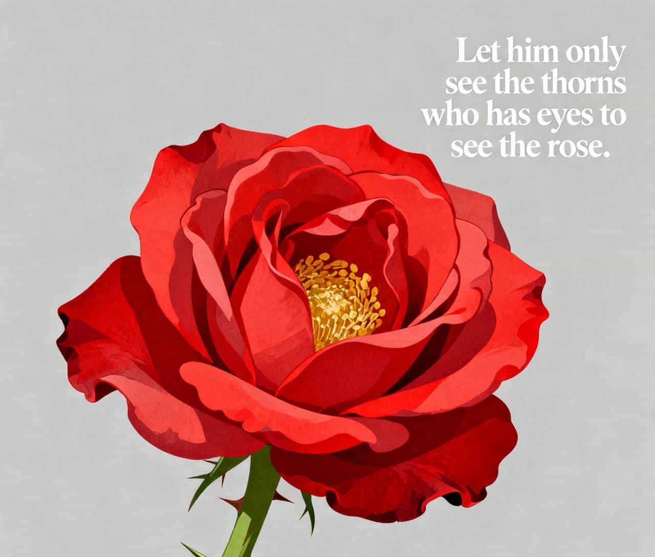 让我们培养这样的眼睛——既能感受荆棘的警示,也能沐浴花瓣的芬芳。由于世界从未改变它同时包含玫瑰与刺的本质,改变的只是我们选择聚焦的部分。当我们的眼睛学会同时容纳柔软与尖锐,我们才真正看见了事物本来的完整面貌。