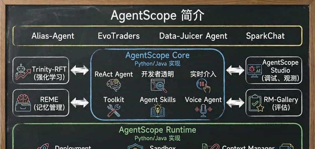 AgentScope 是阿里巴巴推出的一款以开发者为核心,专注于智能体开发的开源框架,是继 ModelScope(魔搭社区)后在 Agent 层的战略产品。它的核心目标是解决智能体在构建、运行和管理中的难题,提供一套覆盖“开发、部署、调优”全生命周期的生产级解决方案,让智能体应用的开发更简单、运行更稳定、效果更卓越。