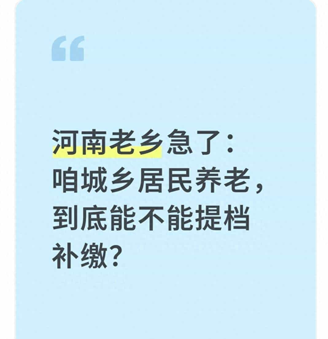 这两天后台快被河南老乡的留言“挤爆”了——“早年缴城乡居民养老选了200元最低档,目前想多交点补档次,咋就不行?”“安徽、浙江都能补了,咱河南啥时候能跟上?”