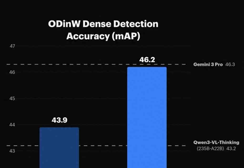在物体检测基准测试ODinW-13中,Uni-1完整版得分46.2 mAP,几乎追平谷歌Gemini 3 Pro的46.3。更有意思的是,仅具备理解能力的Uni-1变体得分43.9,而经过生成训练的完整版得分提升了2.3分,这直接证明:学会生成图像能反过来提升模型的图像理解能力。