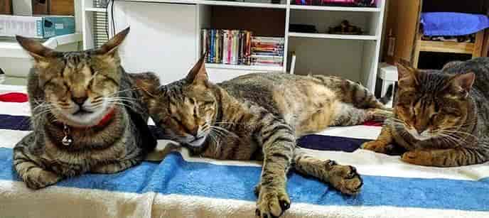 三只失明小猫与女主人家里的其他猫咪相处也十分融洽。