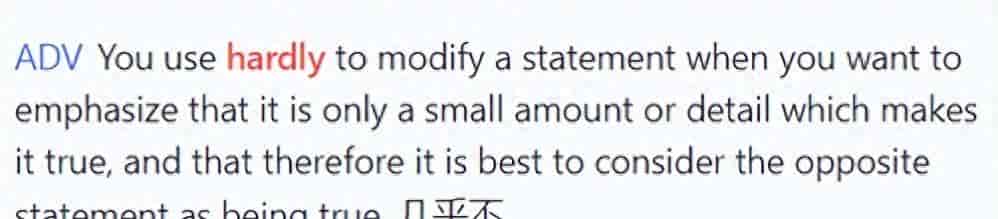 但实则,hardly 和 hard 只相差一个 ly,意思却完全相反。