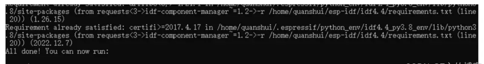 注意:每一次关闭Ubuntu后重启都需要激活IDF