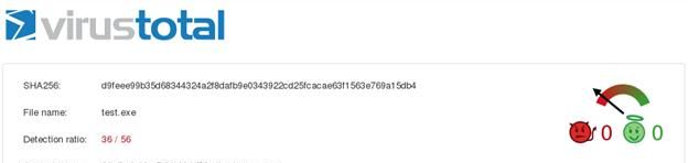 让我们在virustotal.com上扫描这个载荷“test.exe”,如下图。