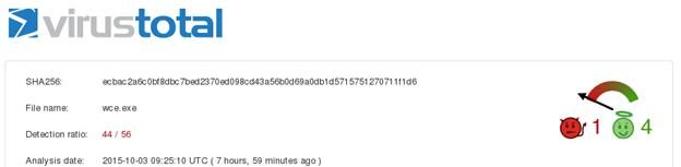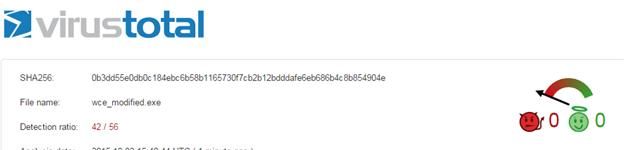 在我们使用Hyperion之前,第一让我们在virustotal.com上扫描wce.exe的32位版本。