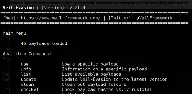 第一,下载并安装Veil-Evasion,然后运行它,命令为:“veil-evasion”