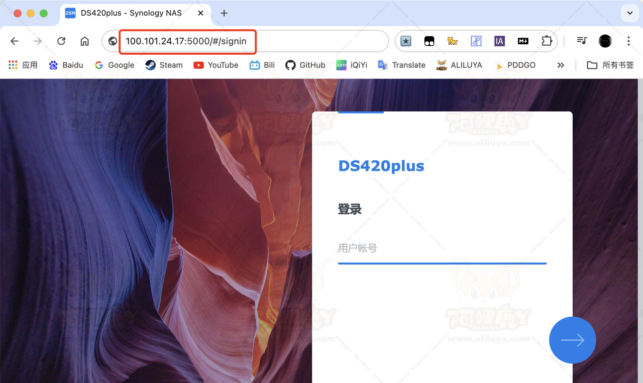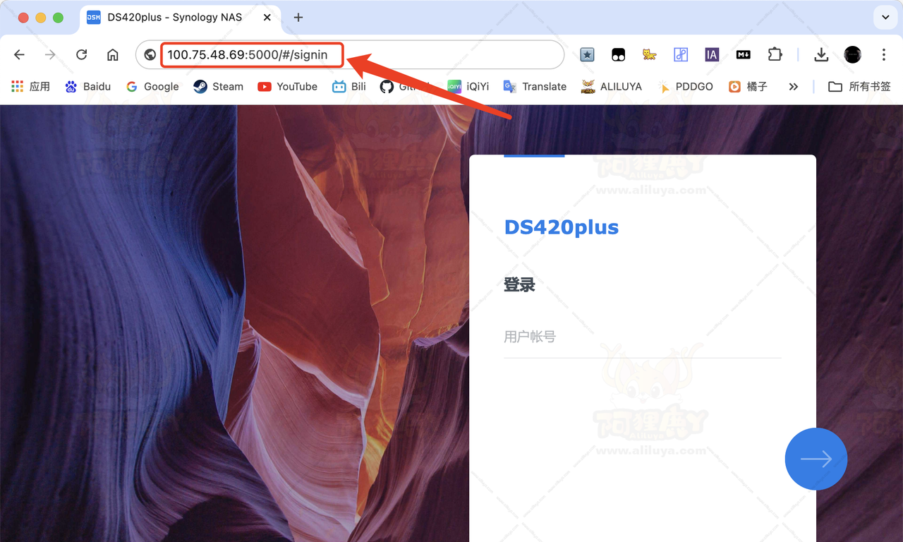 使用MacBook浏览器输入Tailscale里提供的NAS的IP+群晖端口进行访问。这样已经大功告成了,出门在外就可以随时随地访问自己家里的NAS了!