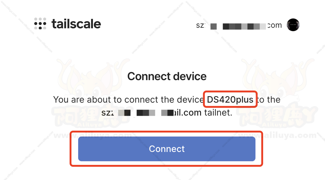 登录之后看到连接设备提示,你的NAS设备DS420plus连接到你Tailscale账号组建的局域网中。点击【Connect】连接即可。
