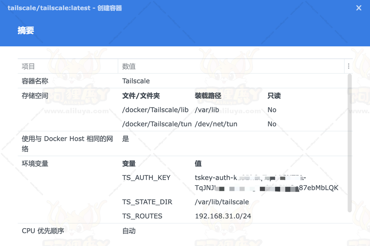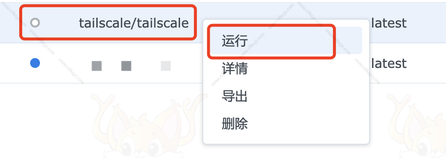 右键 – 运行 创建Tailscale容器