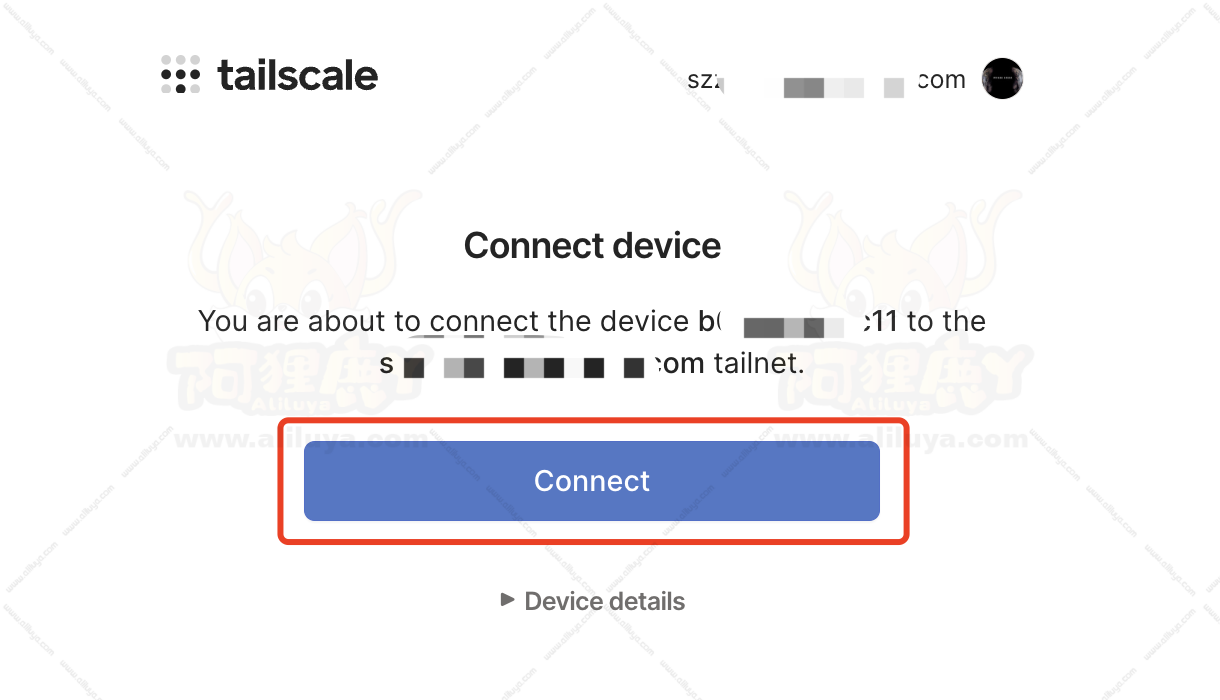 之后会弹出登录的网址,用你注册登录时候使用的第三方账号登录就可以了。登录完成之后会显示以下界面,显示把设备连接到你的账号组建的局域网中。点击【Connect】进行连接。