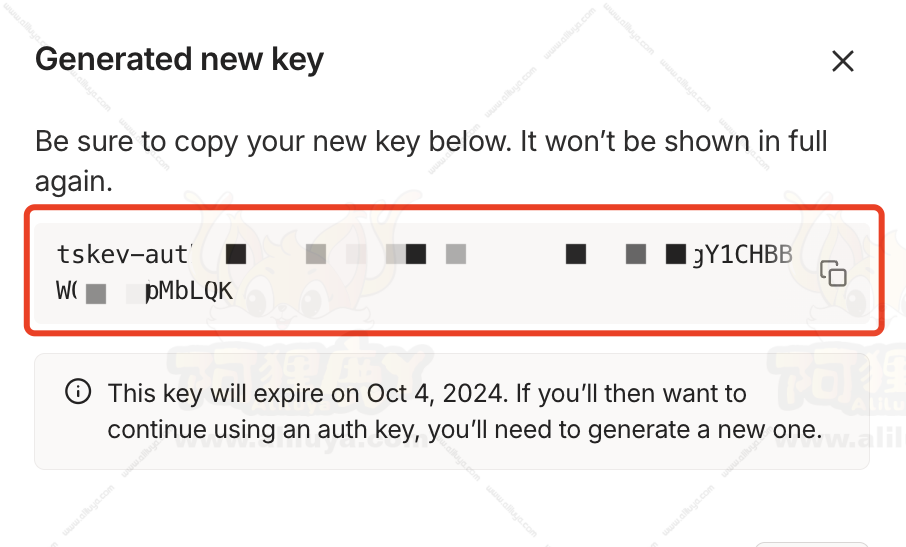 复制保存好密钥,后续 Docker部署 Tailscale 会用到,保存好之后直接点击【Done】。