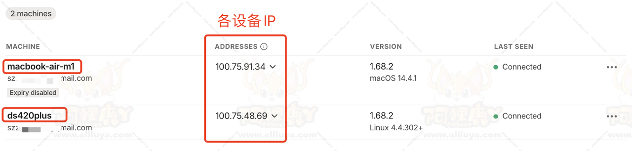 现在就有两台设置在Tailscale组网当中了,这两台设置都能互相访问。