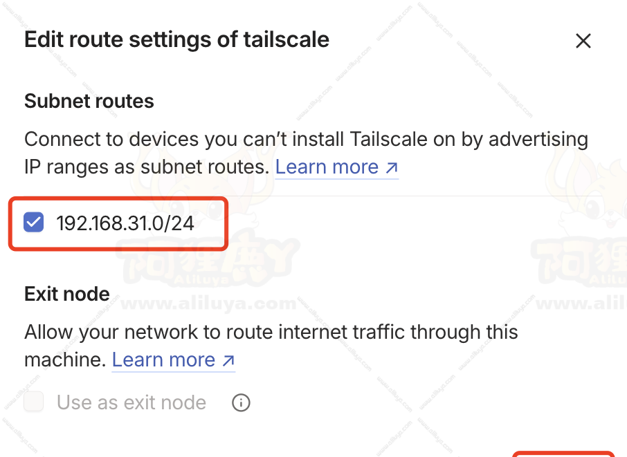 (根据自己的路由网关进行填写,我的是“192.168.31.1″所以这需要填写192.168.31.0/24)