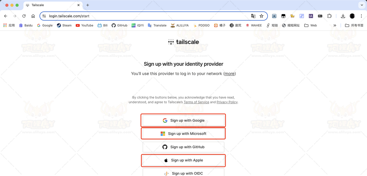 打开Tailscale官网,点击右上角 进行注册登录。
